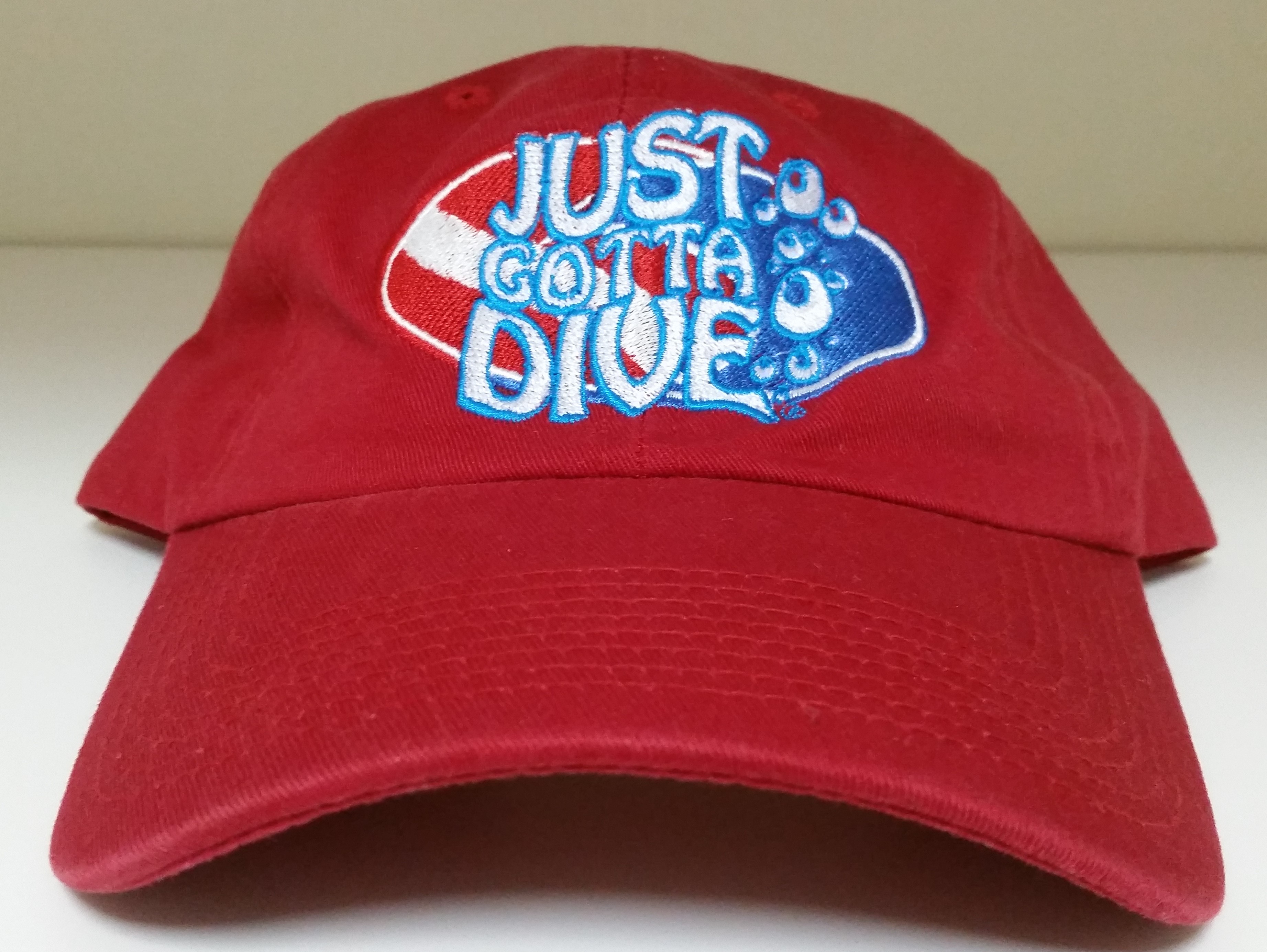 Keep your head covered in our super-soft, unstructured low-profile diving hat with the Just Gotta Dive logo embroidered on the front and “Assisting Divers Under Pressure” on the back. Made with garment washed cotton, our diving cap has a pre-curved bill and an adjustable hideaway closure; one size fits all. Order your Just Gotta Dive scuba hat now!